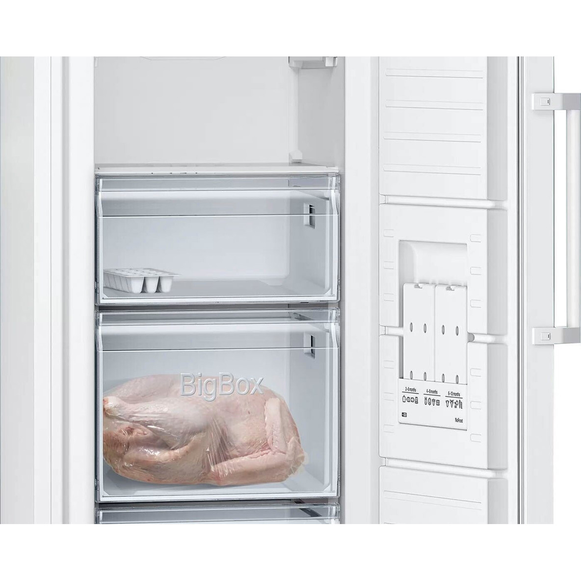 Der Siemens iQ300 GS29NVWEP ist ein freistehender Standgefrierschrank mit einer Breite von 60 cm und einem großzügigen Nutzinhalt von 200 Litern. Dank der No-Frost-Technologie gehört manuelles Abtauen der Vergangenheit an, was Ihnen Zeit und Mühe spart.