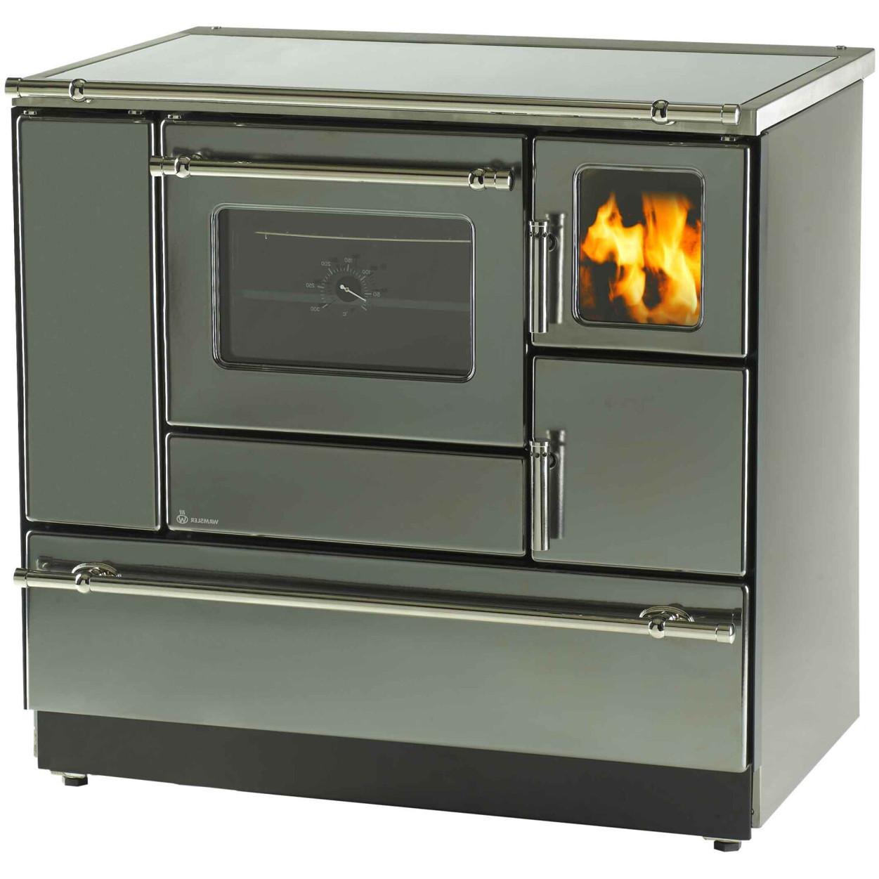 Dieser Standherd verfügt über einen integrierten Backofen und ein Kochfeld aus Stahl, das auch als Glaskeramik-Kochfläche genutzt werden kann. Dank Dauerbetrieb und Zeitbrandfunktion passt er sich flexibel an Ihre Bedürfnisse an und bietet eine effiziente Wärmenutzung.