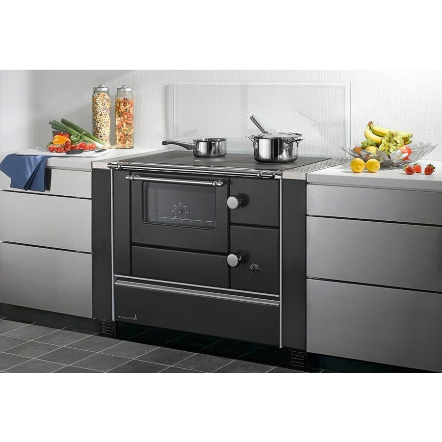 Dieser Küchenofen bietet Dauerbetrieb und einen seitlichen Anschluss links für flexible Installation. Ausgestattet mit einem robusten Stahlkochfeld, ist er eine zuverlässige Ergänzung für jedes Zuhause.