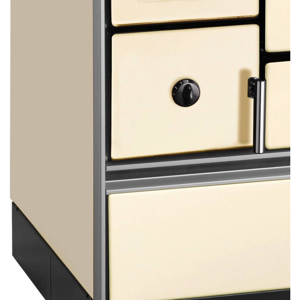 Der Wamsler K 176 F/A 70 elfenbein / rechts ist ein Standgerät mit Dauerbetrieb und wird mit Scheitholz befeuert. Dieser Holzherd verfügt über eine Heizleistung von 5 kW. Mit seinem Stahlkochfeld und dem emaillierten Stahl- und Keramikgehäuse vereint er Funktionalität mit ansprechendem Design.
