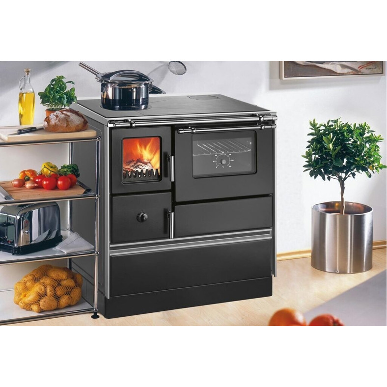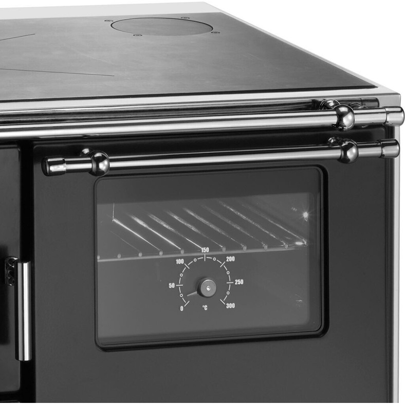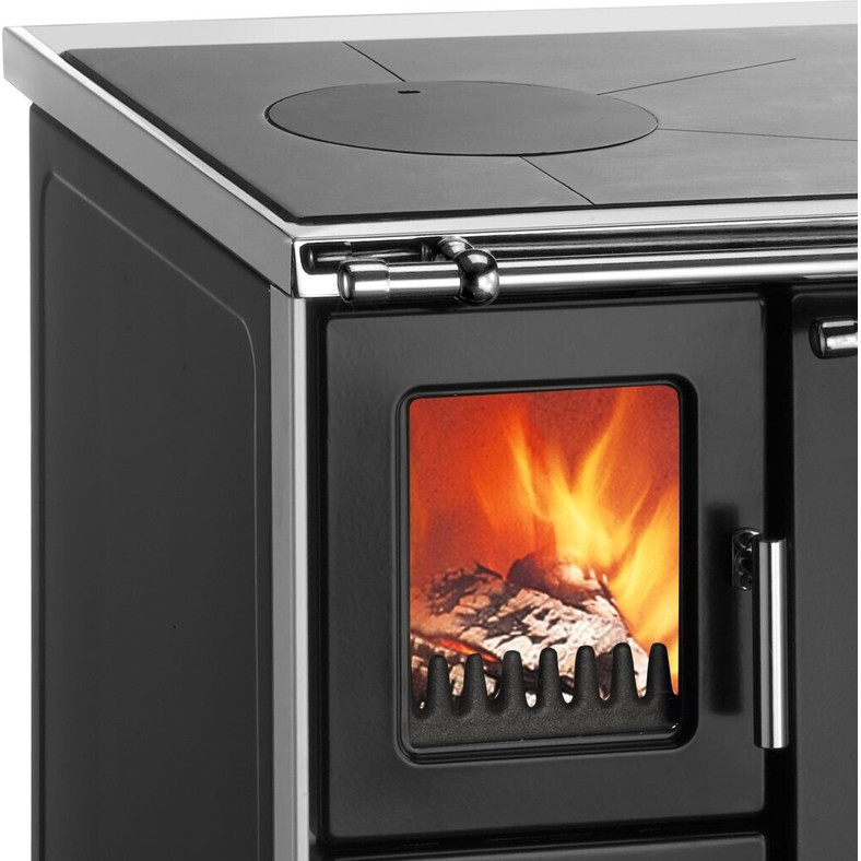 Dieser Holzherd überzeugt durch sein Sichtfenster, das Ihnen den Blick auf das lodernde Feuer freigibt, und verfügt über eine robuste Stahl-Kochfläche. Die Primär- und Sekundärluftsteuerung ermöglicht eine effiziente Verbrennung von Scheitholz.