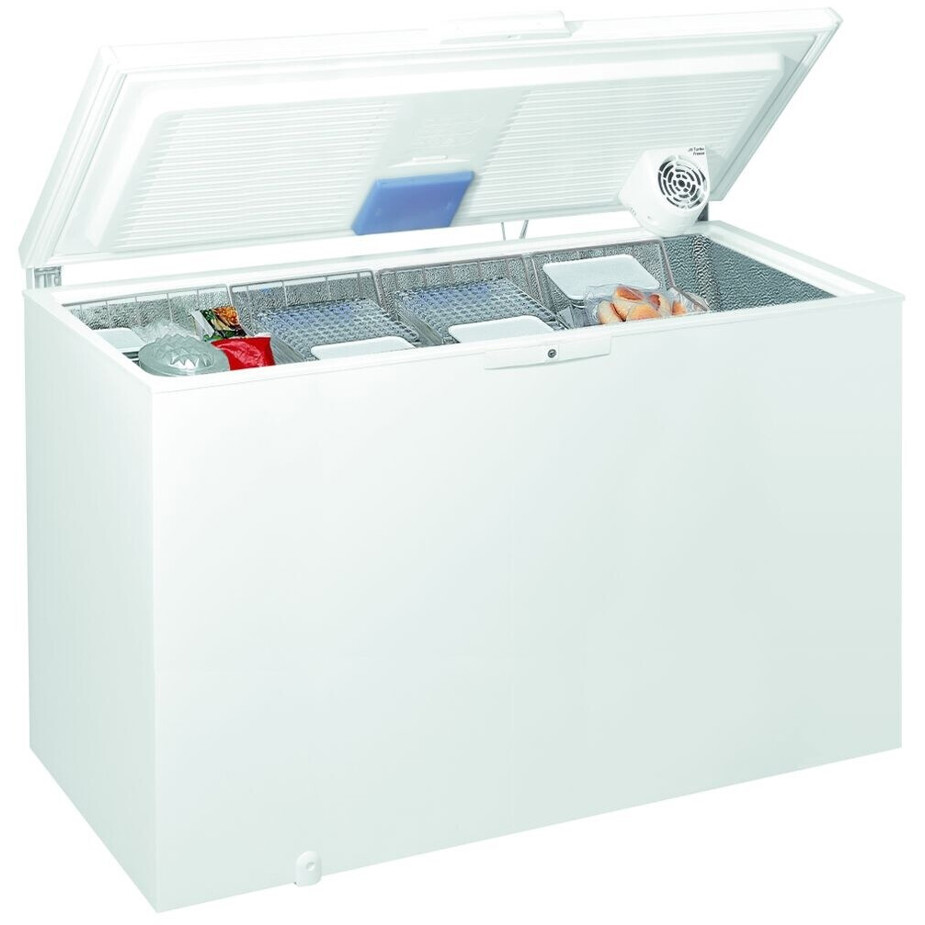 Die Whirlpool WHE39392T Gefriertruhe bietet mit 395 Litern Inhalt reichlich Platz für Ihre Tiefkühlwaren. Die effektive Lagerzeit von 45 Stunden bei einer Störung schützt Ihre Lebensmittel zuverlässig, selbst bei unerwarteten Stromausfällen.